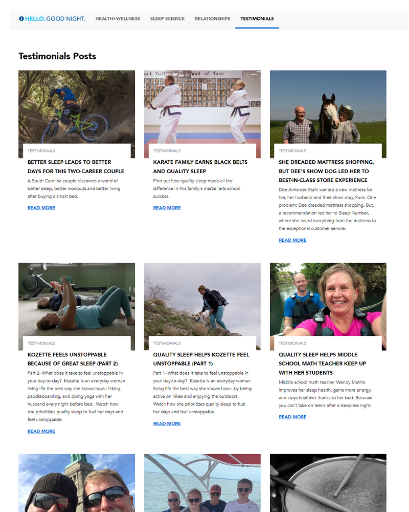 Influence Marketing: Telling Sleep Number Customer Stories (blog articles)